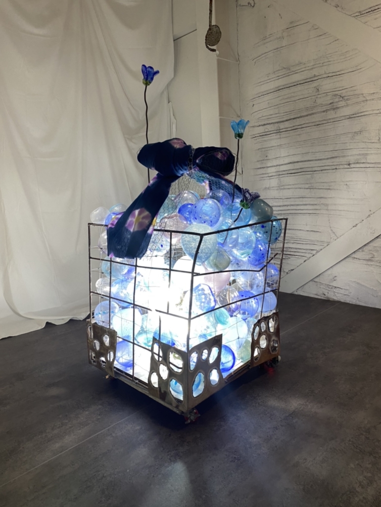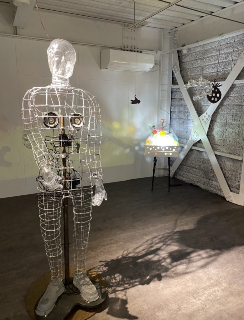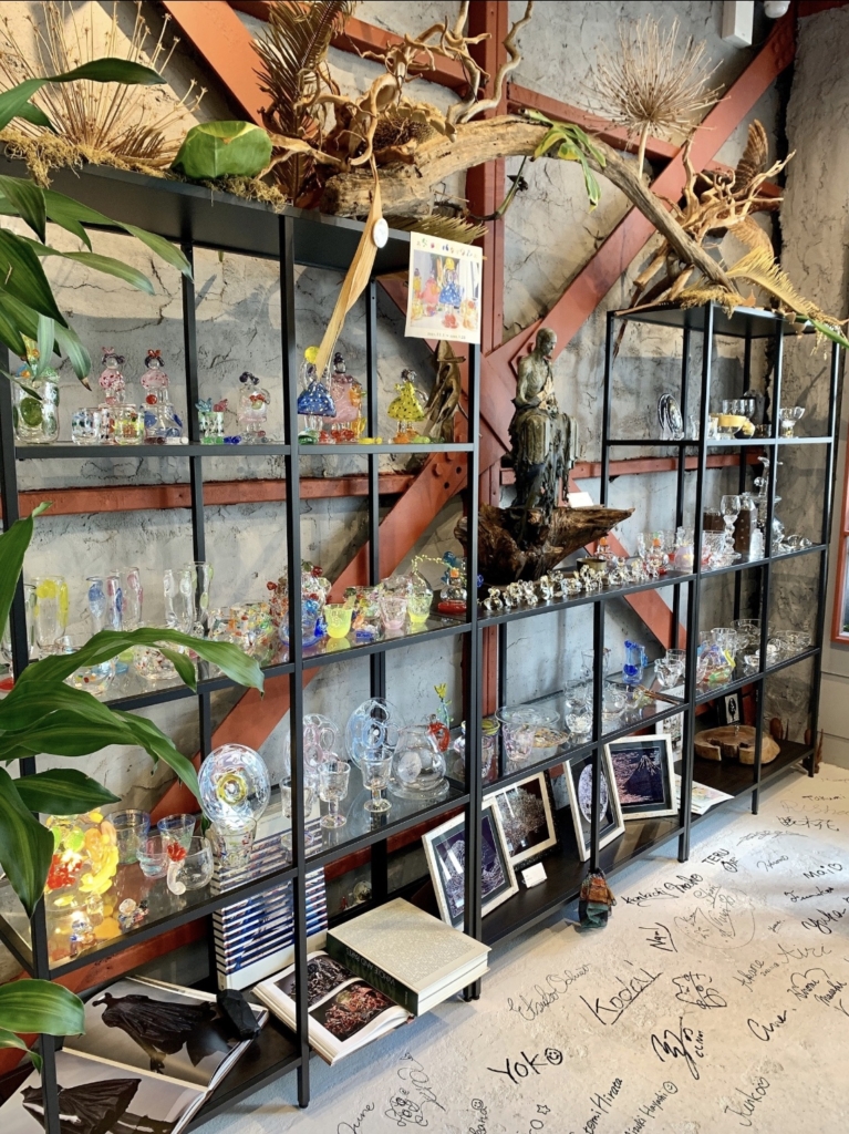 食事後は、2階のギャラリーへ探索!伺った期間は、キッタヨーコさんの作品が展示されており、ガラスを組み合わせた綺麗な作品は近づくとライトや音で、中には触れて楽しむ作品もあってメルヘンで摩訶不思議な空間を感じることができた 色ガラスはライトとコラボすることで一瞬にして表情を変える、ガラスの冷たく感じる空間から、どこか温かかく「ふわっ」と包まれる光の空間へ誘われる、絶妙に重なった色ガラスたちは自然光にあたる姿もきっと柔らかく心を和らぐひと時が過ごせそう。。
